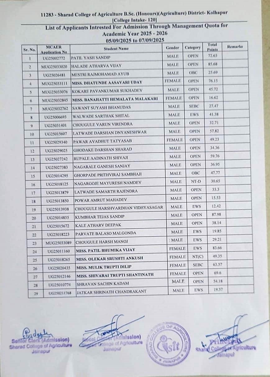 for more information available at | www.mcaer.org.in | www.maha-agriadmission.in | |||||